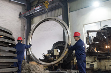 鍛打、車削為一體的流水生產線,公司引進優質卷制法蘭設備,采用了大